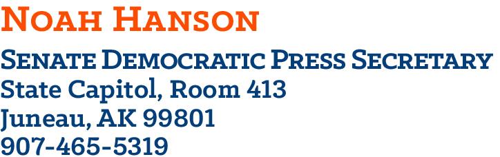 Members of the press with questions may contact Alaska Senate Democratic Press Secretary, Noah Hanson at 465-5319.